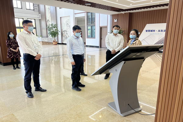 李小飞一行首先实地察看了长汀智能运营中心展示中心,总体了解了智慧长汀建设成果,随后在综合调度指挥中心听取了公司发展历程、取得成绩及运营情况汇报,详细了解了智慧应用、信息化建设、智慧城市新技术、大数据、物联网和安全系统等资源对青少年科普教育发展的作用。